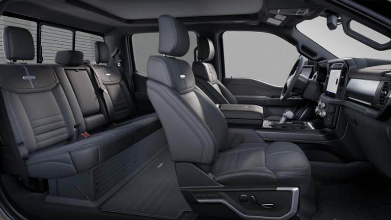 WE DELIVER ANYWHERE, 3.5L PowerBoost Full-Hybrid V6, 4WD, 4-Wheel Disc Brakes, 8 Speakers, ABS brakes, Adjustable pedals, Air Conditioning, Alloy wheels, AM/FM radio: SiriusXM with 360L, Auto High-beam Headlights, Auto tilt-away steering wheel, Auto-dimming door mirrors, Auto-dimming Rear-View mirror, Automatic temperature control, Brake assist, Bumpers: body-color, Compass, Delay-off headlights, Driver door bin, Driver vanity mirror, Dual front impact airbags, Dual front side impact airbags, Electronic Stability Control, Emergency communication system: SYNC 4 911 Assist, Engine Block Heater, Equipment Group 702A High, Front anti-roll bar, Front Bucket Seats, Front Center Armrest, Front dual zone A/C, Front fog lights, Front License Plate Bracket, Front reading lights, Front wheel independent suspension, Fully automatic headlights, Garage door transmitter, Hard Folding Tonneau Pickup Box Cover, Heated door mirrors, Heated front seats, Heated rear seats, Heated steering wheel, Illuminated entry, Internet access capable: FordPass Connect 5G, Leather steering wheel, LED Sideview Mirror Spotlights, Low tire pressure warning, Memory seat, Navigation system: Connected Navigation, Occupant sensing airbag, Outside temperature display, Overhead airbag, Overhead console, Panic alarm, Passenger door bin, Passenger vanity mirror, Pedal memory, Power door mirrors, Power driver seat, Power passenger seat, Power steering, Power Telescoping/Glass/Folding Trailer Tow Mirrors, Power windows, Radio data system, Radio: B&O Sound System by Bang & Olufsen, Rain sensing wipers, Rear reading lights, Rear seat center armrest, Rear step bumper, Rear window defroster, Remote keyless entry, Retractable Rear Center Step, Security system, Speed control, Split folding rear seat, Steering wheel memory, Steering wheel mounted audio controls, SYNC 4 w/Enhanced Voice Recognition, Tachometer, Telescoping steering wheel, Tilt steering wheel, Tough Bed Spray-In Bedliner, Traction control, Trip computer, Turn signal indicator mirrors, Unique Multi-Contour Leather Bucket Seats, Variably intermittent wipers, Ventilated front seats, Voltmeter, Wheel Well Liner, Wheels: 20 Painted Gloss Ebony Black, 3.5L PowerBoost Full-Hybrid V6, 4WD.
