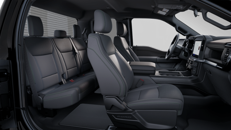 Comfort and convenience are also priorities in the F-150 STX. The spacious cabin features a SYNC 4 infotainment system, power windows and locks, and a rear window defroster to keep you comfortable in any weather. The split-folding rear seat and console worksurface transform the interior into a mobile office, allowing you to stay productive on the go.