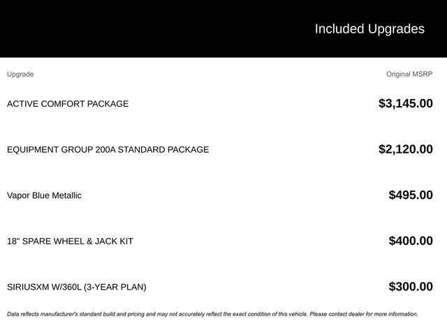 Step inside the spacious cabin, and you'll be greeted by a wealth of premium amenities designed to enhance your comfort and convenience. The Active Comfort Package includes second-row HVAC controls, a heated steering wheel, and more, while the Equipment Group 200A Standard Package offers features like a power liftgate, active noise cancellation, and an impressive array of USB ports throughout the cabin.