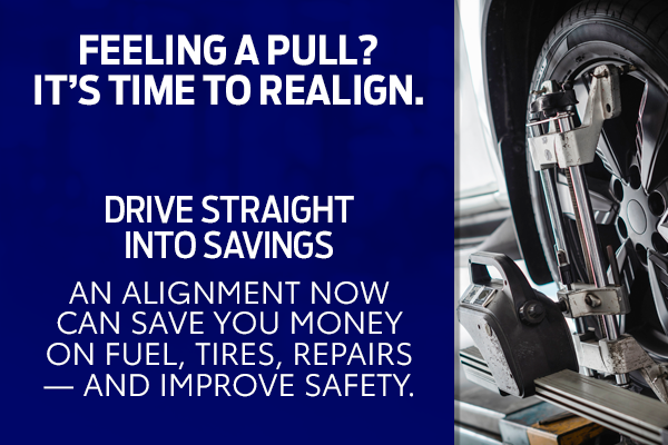 Valid on 4-wheel alignment service. Plus tax and applicable fees. May not combine with any other offer. Must present coupon at the time of purchase. See dealer for details.