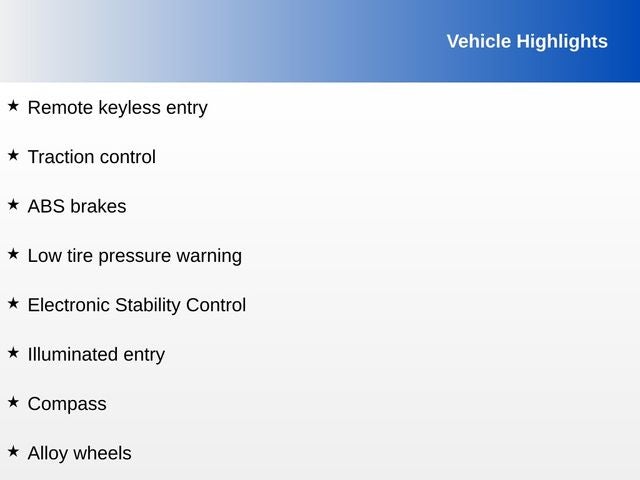 - Remote Keyless Entry w/Integrated Key Transmitter, Illuminated Entry and Panic Button