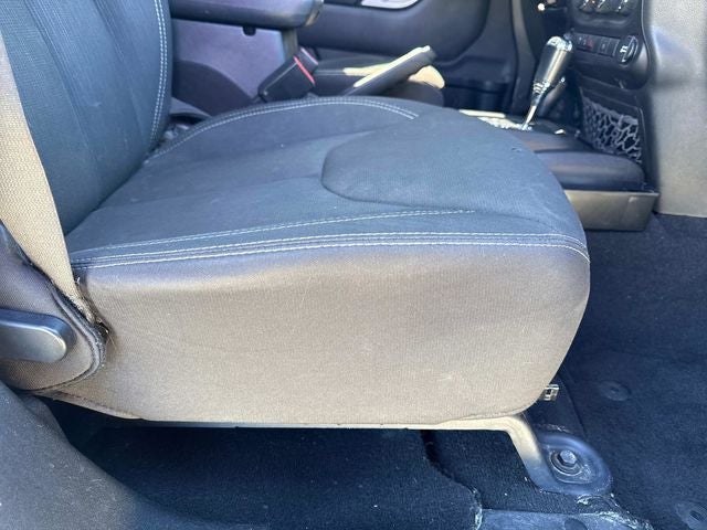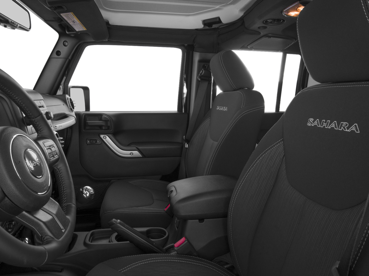 Slip behind the wheel and you'll be surrounded by thoughtful creature comforts, including power windows, remote keyless entry, and steering wheel-mounted audio controls. The Sahara's rugged yet refined interior is accented by premium cloth seating, a leather-wrapped steering wheel, and an auto-dimming rearview mirror.