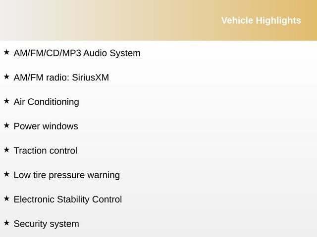 - Radio: AM/FM/CD/MP3 Audio System -inc: SIRIUS satellite radio, USB/auxiliary input jacks, 4 speakers, Bluetooth® wireless technology w/voice recognition, and steering-wheel-mounted audio controls