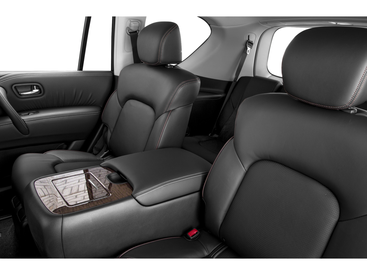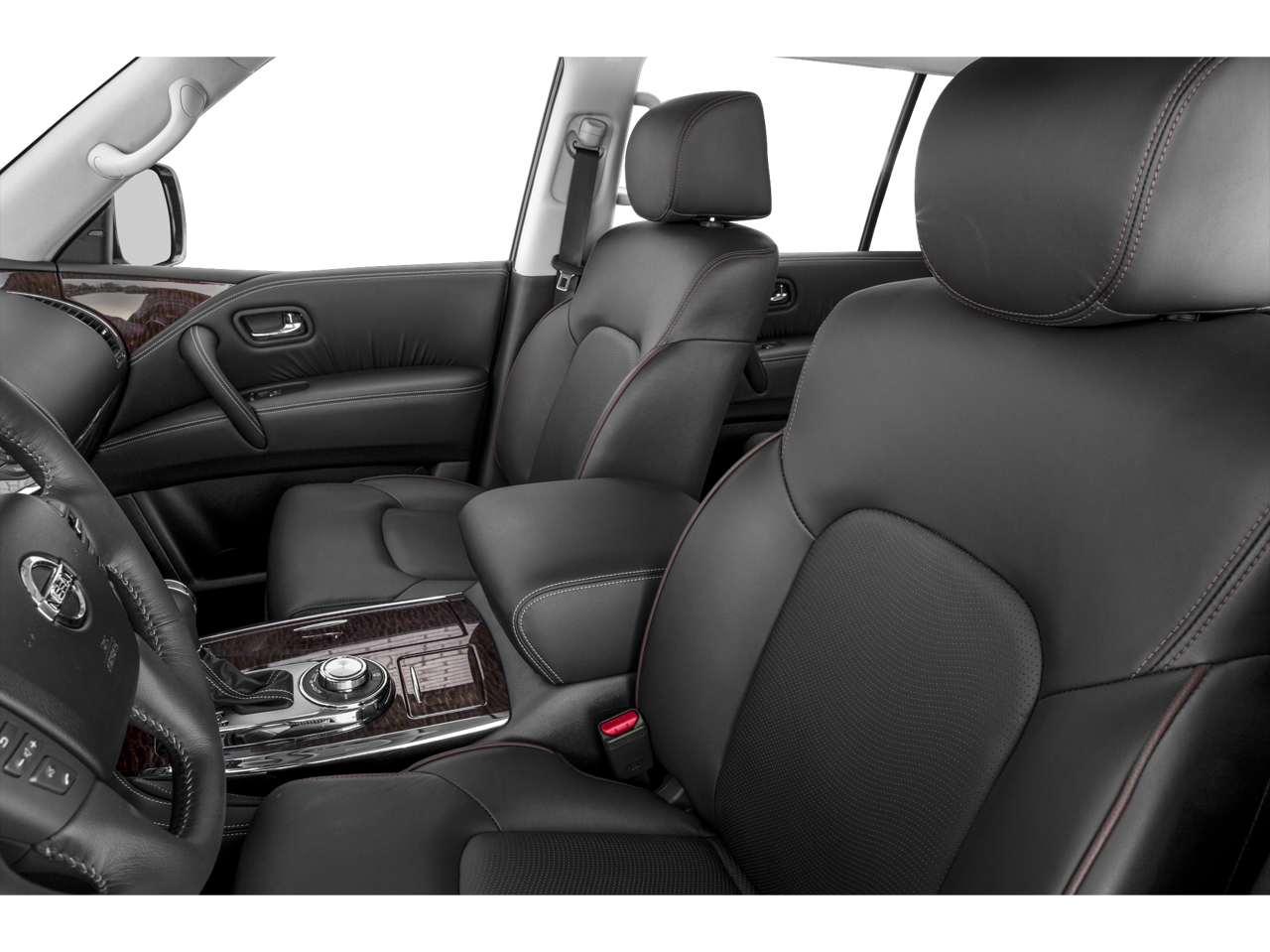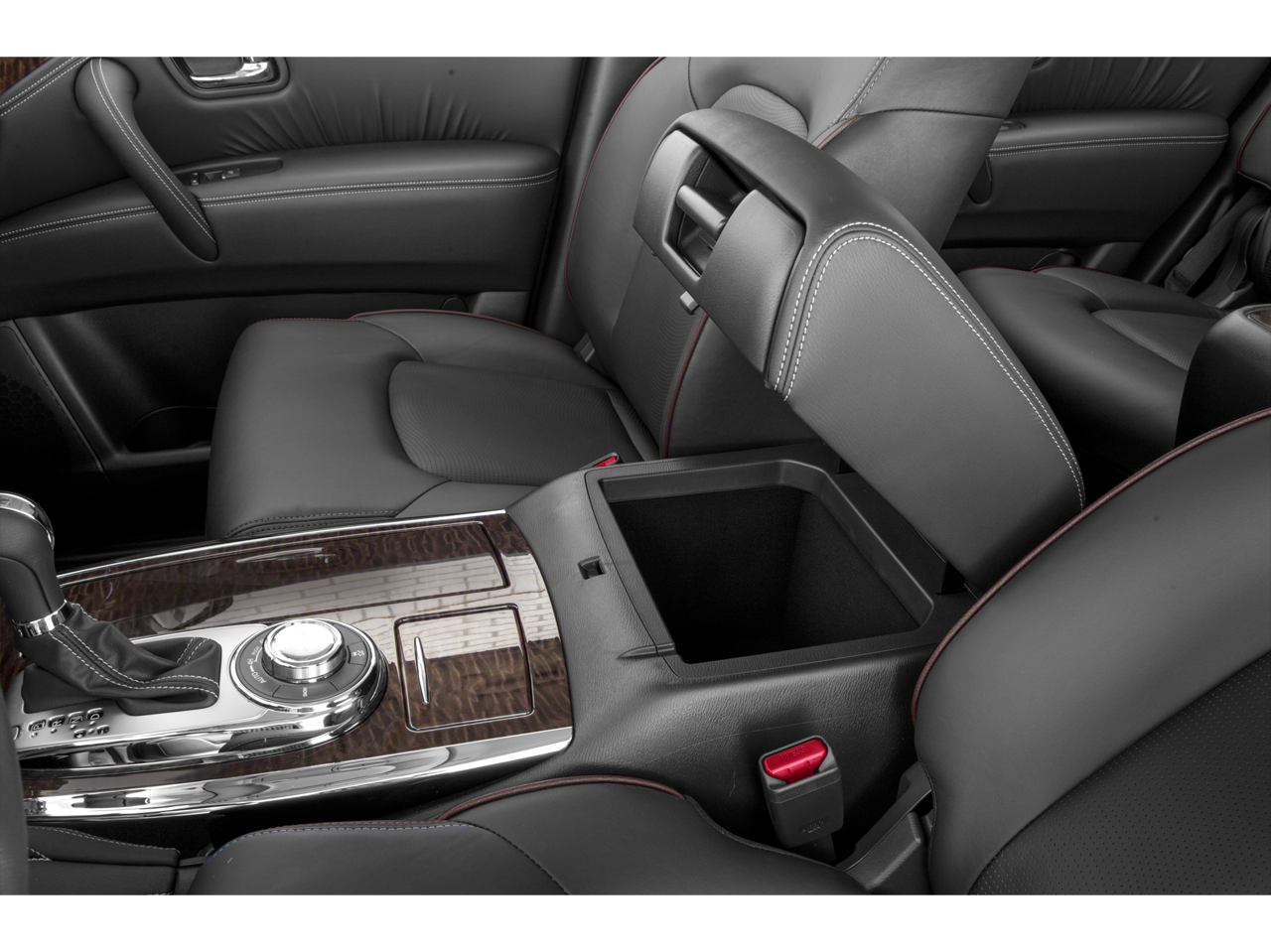 13 Speakers, 2.937 Axle Ratio, 3rd row seats: split-bench, 4-Wheel Disc Brakes, A/V remote, ABS brakes, Air Conditioning, Alloy wheels, AM/FM radio: SiriusXM, Anti-whiplash front head restraints, Auto tilt-away steering wheel, Auto-dimming door mirrors, Auto-dimming Rear-View mirror, Auto-leveling suspension, Automatic temperature control, Brake assist, Bumpers: body-color, CD player, Delay-off headlights, Driver door bin, Driver vanity mirror, Dual front impact airbags, Dual front side impact airbags, Electronic Stability Control, Emergency communication system: NissanConnect Services, Four wheel independent suspension, Front anti-roll bar, Front Bucket Seats, Front Center Armrest, Front dual zone A/C, Front fog lights, Front reading lights, Fully automatic headlights, Garage door transmitter: HomeLink, Headphones, Heated & Cooled Front Bucket Seats w/Driver Memory, Heated door mirrors, HEATED FRONT SEATS, Heated rear seats, Heated steering wheel, Illuminated entry, Lane Departure Warning System, Leather Shift Knob, Leather-Appointed Seat Trim, Low tire pressure warning, Memory seat, NAVIGATION, Occupant sensing airbag, Outside temperature display, Overhead airbag, Overhead console, Panic alarm, Passenger door bin, Passenger vanity mirror, Power door mirrors, Power driver seat, Power Liftgate, Power moonroof, Power passenger seat, Power steering, Power windows, Radio data system, Radio: Bose AM/FM/SXM/CD/MP3/HD Radio, Rain sensing wipers, Rear air conditioning, Rear anti-roll bar, Rear reading lights, Rear seat center armrest, Rear window defroster, Rear window wiper, Reclining 3rd row seat, Remote keyless entry, Roof rack: rails only, Security system, Speed control, Speed-sensing steering, Speed-Sensitive Wipers, Split folding rear seat, Spoiler, Steering wheel memory, Steering wheel mounted audio controls, Tachometer, Telescoping steering wheel, Tilt steering wheel, Traction control, Trip computer, Turn signal indicator mirrors, Variably intermittent wipers, Ventilated front seats, Voltmeter, Wheels: 20 Machine-Faced Chrome w/Tinted CC.