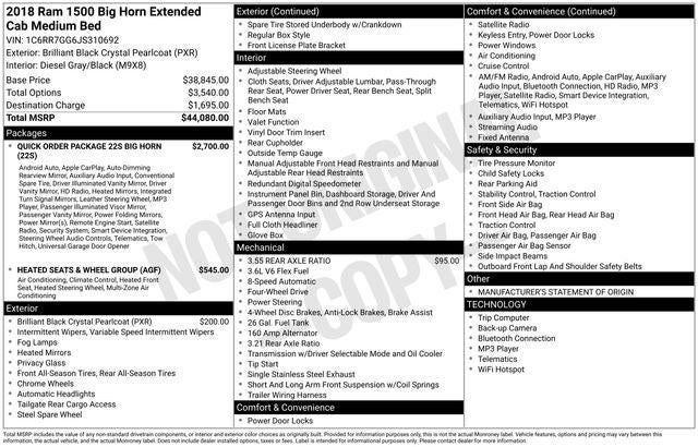 Brilliant Black Crystal Pearlcoat 2018 Ram 1500 Big Horn 3.6L V6 24V VVT 8-Speed Automatic 4WD
