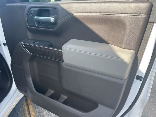 The Silverado's striking white exterior and chrome accents create a bold, commanding presence on the road. Step inside and you'll be greeted by a spacious and well-appointed cabin, featuring leather-appointed seats, a heated steering wheel, and a premium Chevrolet Infotainment 3 Plus System with an 8-inch touch screen.