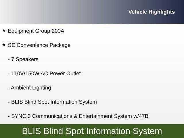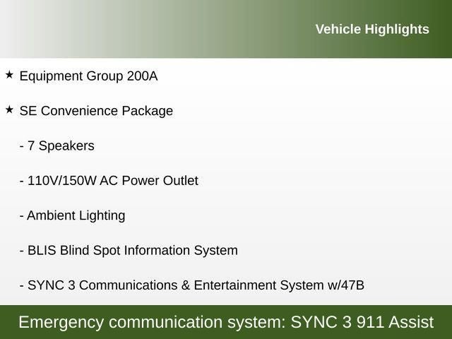 - SYNC 3 Communications & Entertainment System -inc: enhanced voice recognition, 6.5" LCD capacitive touchscreen in center stack w/swipe capability, AppLink, 911 Assist, Apple CarPlay, Android Auto and 2 smart-charging USB ports