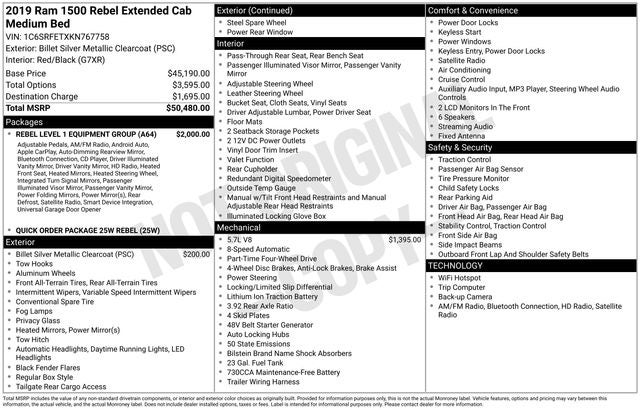 2019 RAM 1500 Rebel Quad Cab 4x4 6'4' Box