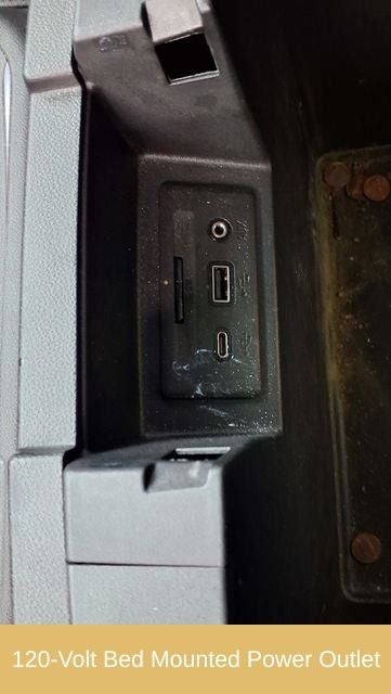 - LED Cargo Area Lighting located in pickup bed, activated with switch on center switch bank or key fob