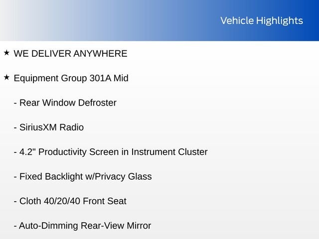 - SYNC 3 -inc: enhanced voice recognition communications and entertainment system, 8" LCD capacitive touchscreen in center stack w/swipe capability, pinch-to-zoom capability included when equipped w/available voice-activated touchscreen navigation system, AppLink, 911 Assist, Apple CarPlay and Android Auto compatibility and 2 smart charging USB ports