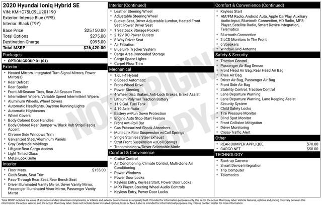 2020 Hyundai Ioniq Hybrid SE Recent Arrival!