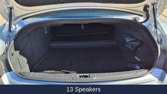 • Radio: AM/FM/HD w/Navigation -inc: Bose performance series audio 13-speaker stereo w/Bose Centerpoint simulated surround, CD, Apple CarPlay, Siri eyes free, Android Auto, Bluetooth® handsfree phone system w/hands-free text messaging assistant, 2 USB connection ports (1 Type A, 1 Type C), auxiliary input jacks, SiriusXM satellite radio w/3 month complimentary trial and streaming audio via Bluetooth®, Navigation w/lane guidance, 3D building graphics and 5 year complimentary trial access to premium traffic and MapCare, INFINITI InTouch w/Wi-Fi hotspot, voice recognition for navigation functions, including 1-shot voice destination entry, SiriusXM Traffic w/3 month complimentary trail access to real-time traffic information, SiriusXM Travel Link w/3 month complimentary trail access to weather, fuel prices, stock prices, sports scores, movie listings and parking