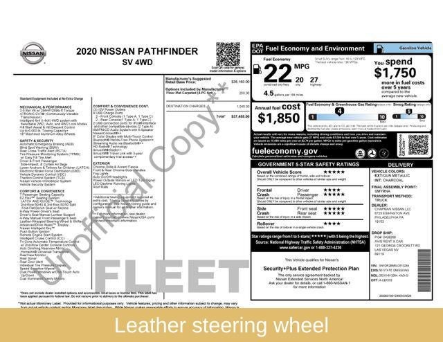 The Pathfinder's spacious interior offers seating for up to seven, with ample room for passengers and cargo alike. Indulge in the comfort of the leather-wrapped steering wheel and the versatility of the split-folding rear seats. With an impressive fuel economy of 20 MPG in the city and 27 MPG on the highway, this SUV delivers exceptional efficiency to complement its powerful performance.