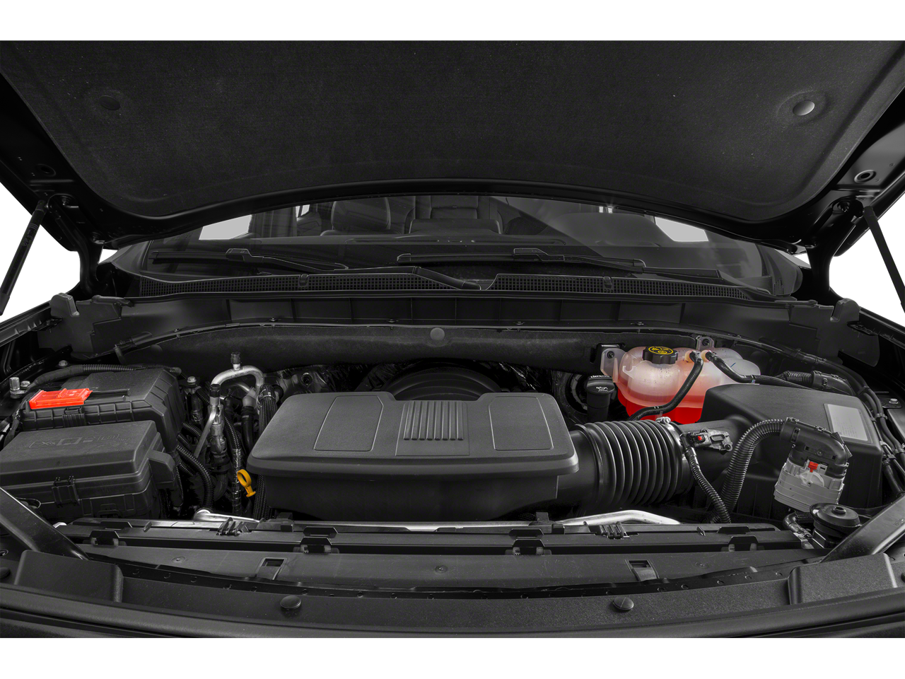 10-Way Power Driver & Passenger Seat Adjusters, 1st & 2nd Row Color-Keyed Carpeted Floor Mats, 2 USB Data Ports, 2nd Row Manual Bucket Seats, 3.23 Rear Axle Ratio, 3rd row seats: split-bench, 4-Wheel Disc Brakes, 9 Speakers, ABS brakes, Air Conditioning, Alloy wheels, AM/FM radio: SiriusXM with 360L, Apple CarPlay/Android Auto, Auto High-beam Headlights, Auto-Dimming Inside Rear-View Mirror, Auto-dimming Rear-View mirror, Automatic temperature control, Black Name Plates (LPO), Bose 9-Speaker Stereo Audio System Feature, Brake assist, Bright Front & Rear Door Sill Plates, Bumpers: body-color, Color-Keyed Carpeting Floor Covering, Compass, Delay-off headlights, Driver & Front Outboard Passenger Airbags, Driver door bin, Driver vanity mirror, Dual front impact airbags, Dual front side impact airbags, Electronic Stability Control, Emergency communication system: OnStar and Chevrolet connected services capable, Floor Console w/Storage Area, Four wheel independent suspension, Front & Rear Black Bowtie Emblems (LPO), Front anti-roll bar, Front Bucket Seats, Front Center Armrest, Front dual zone A/C, Front High-Back Reclining Bucket Seats, Front reading lights, Fully automatic headlights, Garage door transmitter, Hands-Free Rear Power Programmable Liftgate, HD Radio, Heated door mirrors, Heated Driver & Front Passenger Seats, Heated front seats, Illuminated entry, Infotainment Display, Leather Seat Trim, Leather steering wheel, Leather-Wrapped Steering Wheel, LED Daytime Running Lamps, Low tire pressure warning, Memory seat, Memory Settings for Driver, Not Equipped w/Automatic Stop/Start, Not Equipped w/Steering Column Lock, Occupant sensing airbag, Outside temperature display, Overhead airbag, Overhead console, Panic alarm, Passenger door bin, Passenger vanity mirror, Power door mirrors, Power driver seat, Power Liftgate, Power passenger seat, Power steering, Power windows, Preferred Equipment Group 1LT, Premium audio system: Chevrolet Infotainment 3, Premium Smooth Ride Suspension, Radio: Chevrolet Infotainment 3 Plus System, Rain sensing wipers, Rear air conditioning, Rear anti-roll bar, Rear reading lights, Rear seat center armrest, Rear window defroster, Rear window wiper, Remote keyless entry, Remote Start, Roof rack: rails only, Security system, SiriusXM Radio w/360L, Speed control, Speed-sensing steering, Split folding rear seat, Spoiler, Steering wheel mounted audio controls, Tachometer, Telescoping steering wheel, Tilt steering wheel, Traction control, Trip computer, Universal Home Remote, Variably intermittent wipers, Voltmeter, Wheels: 18 x 8.5 Bright Silver Painted Aluminum, Wheels: 20 x 9 Painted Aluminum.