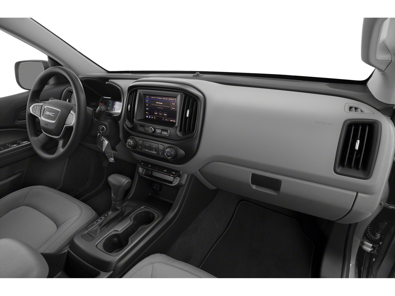 4-Wheel Disc Brakes, 6 Speakers, 6-Speaker Audio System Feature, ABS brakes, Air Conditioning, Alloy wheels, AM/FM radio: SiriusXM, Apple CarPlay/Android Auto, Automatic Locking Rear Differential, Bumpers: body-color, Convenience Package, Delay-off headlights, Driver 4-Way Power Seat Adjuster, Driver door bin, Dual front impact airbags, Dual front side impact airbags, Electronic Automatic Cruise Control, Electronic Stability Control, Exterior Parking Camera Rear, EZ-Lift & Lower Tailgate, Front anti-roll bar, Front Bucket Seats, Front Center Armrest, Front License Plate Kit, Front wheel independent suspension, Fully automatic headlights, Hitch Guidance, Low tire pressure warning, Occupant sensing airbag, Overhead airbag, Passenger door bin, Passenger vanity mirror, Power driver seat, Power steering, Power windows, Preferred Equipment Group 2VL, Premium audio system: GMC Infotainment System, Radio data system, Radio: AM/FM w/7 Diagonal Color Touch-Screen, Rear seat center armrest, Rear step bumper, Rear-Window Electric Defogger, Remote Keyless Entry, Remote Locking Tailgate, SiriusXM Radio, Speed-sensing steering, Tachometer, Tilt steering wheel, Tow/Haul Mode, Traction control, Trailering Package, Trip computer, Unauthorized Entry Theft-Deterrent System, Variably intermittent wipers, Vinyl Seat Trim, Wheels: 18 x 8.5 Black Painted Aluminum.