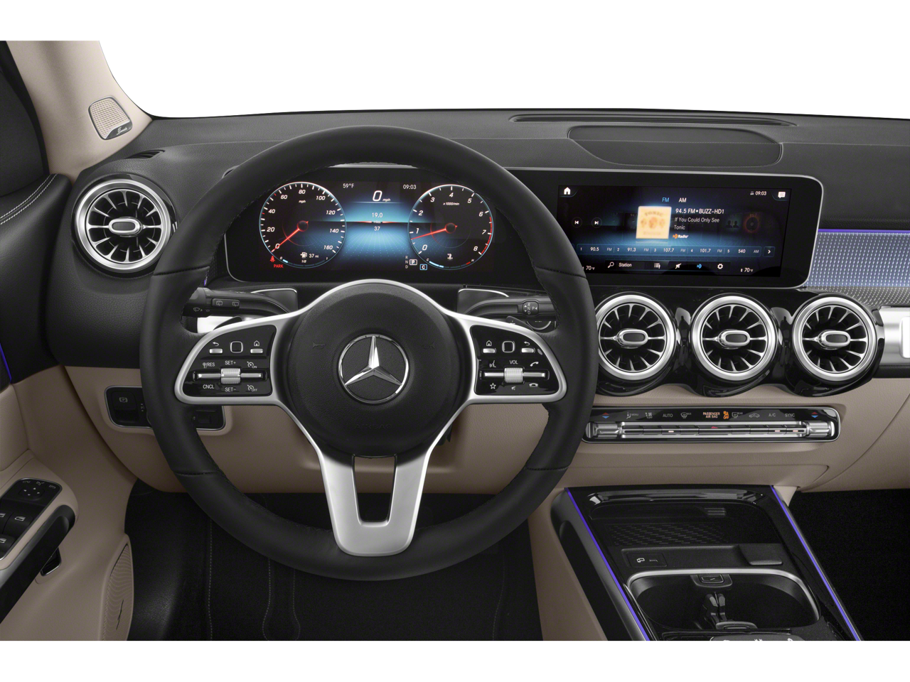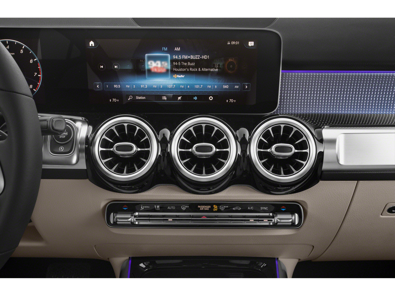 - Radio: MBUX Multimedia System -inc: 7" touchscreen multimedia display, voice control w/natural language understanding and keyword activation, 4 USB-C ports, Bluetooth connectivity and Mercedes me connect services w/trial period