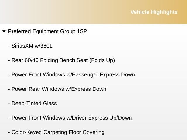 10-Way Power Driver Seat w/Lumbar, 12.3 Multicolor Reconfigurable Digital Display, 120-Volt Bed Mounted Power Outlet, 120-Volt Instrument Panel Power Outlet, 2 USB Data Ports, 220 Amp Alternator, 3.23 Rear Axle Ratio, 4-Wheel Disc Brakes, 4 Black Round Assist Steps (LPO), 40/20/40 Front Split-Bench Seat, 6 Speakers, 6-Speaker Audio System, ABS brakes, Air Conditioning, All-Star Edition, Alloy wheels, AM/FM radio: SiriusXM with 360L, Apple CarPlay/Android Auto, Auto High-beam Headlights, Auto-Locking Rear Differential, Automatic Emergency Braking, Automatic temperature control, Bluetooth® For Phone, Brake assist, Bumpers: body-color, Chevrolet Connected Access Capable, Chevytec Spray-On Black Bedliner, Cloth Seat Trim, Color-Keyed Carpeting Floor Covering, Compass, Convenience Package, Dark Headlamp Bezel, Deep-Tinted Glass, Delay-off headlights, Driver door bin, Driver vanity mirror, Dual Exhaust w/Black Exhaust Tips, Dual front impact airbags, Dual front side impact airbags, Dual Rear USB Ports (Charge Only), Dual-Zone Automatic Climate Control, Electric Rear-Window Defogger, Electrical Steering Column Lock, Electronic Cruise Control, Electronic Stability Control, Electronic Transmission Range Selector Shifter, EZ Lift Power Lock & Release Tailgate, Floor Liners w/Front Removable Carpet Inserts, Floor Liners w/Rear Removable Carpet Inserts, Floor Mounted Center Console, Following Distance Indicator, Forward Collision Alert, Front anti-roll bar, Front Bucket Seats, Front Center Armrest w/Storage, Front dual zone A/C, Front fog lights, Front Frame-Mounted Black Recovery Hooks, Front LED Fog Lamps, Front License Plate Kit, Front Pedestrian Braking, Front reading lights, Front Rubberized Vinyl Floor Mats, Front wheel independent suspension, Fully automatic headlights, HD Rear Vision Camera, Heated door mirrors, Heated Driver & Front Outboard Passenger Seats, Heated front seats, Heated Power-Adjustable Outside Mirrors, Heated Steering Wheel, Heated steering wheel, High Capacity Suspension Package, High Gloss Black Door Handles, High Gloss Black Grille, High Gloss Black Mirror Caps, Hitch Guidance, Illuminated entry, Inside Rear-View Mirror w/Tilt, IntelliBeam Automatic High Beam On/Off, Keyless Open & Start, Lane Keep Assist w/Lane Departure Warning, Leather Wrapped Steering Wheel, LED Cargo Area Lighting, Low tire pressure warning, Manual Tilt/Telescoping Steering Column, Not Equipped w/Steering Column Lock, Occupant sensing airbag, OnStar & Chevrolet Connected Services Capable, Outside temperature display, Overhead airbag, Overhead console, Panic alarm, Passenger door bin, Passenger vanity mirror, Performance Red Recovery Hooks, Power door mirrors, Power driver seat, Power Front Windows w/Driver Express Up/Down, Power Front Windows w/Passenger Express Down, Power Rear Windows w/Express Down, Power steering, Power windows, Preferred Equipment Group 1SP, Premium audio system: Chevrolet Infotainment 3 Premium, Protection Package, Radio data system, Radio: Chevrolet Infotainment 3 Premium System, Rear 60/40 Folding Bench Seat (Folds Up), Rear reading lights, Rear Rubberized-Vinyl Floor Mats, Rear step bumper, Rear Wheelhouse Liners, Rear window defroster, Redline Edition, Remote keyless entry, Remote Vehicle Starter System, Security system, SiriusXM w/360L, Speed control, Speed-sensing steering, Split folding rear seat, Standard Suspension Package, Standard Tailgate, Steering Wheel Audio Controls, Steering wheel mounted audio controls, Tachometer, Telescoping steering wheel, Theft Deterrent System (Unauthorized Entry), Tilt steering wheel, Traction control, Trailering Package, Trip computer, Variably intermittent wipers, Voltmeter, Wheels: 18 x 8.5 Bright Silver Painted Aluminum, Wheels: 20 x 9 High Gloss Black Painted Aluminum, Wi-Fi Hot Spot Capable, Wireless Charging, Wireless Phone