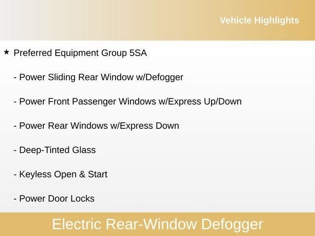 - Navigation System, Steering Wheel Audio Controls, Electric Rear-Window Defogger, Power Windows, Remote Vehicle Starter, Keyless Open & Start, Lane Departure Warning, Automatic Emergency Braking, HD Surround Vision, Wireless Charging, Heated & Ventilated Front Seats