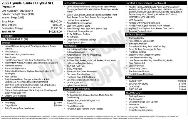 - Vehicle Name: Hyundai Santa Fe Hybrid