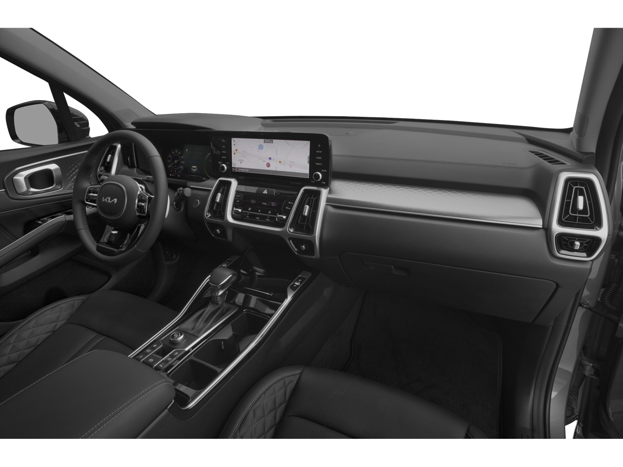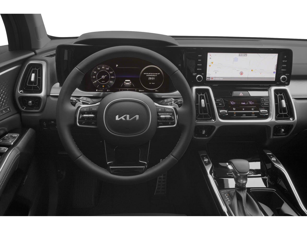CARFAX One-Owner. Clean CARFAX. Wolf Gray 2022 Kia Sorento SX FWD 8-Speed DCT 2.5L I4 DGI Turbocharged DOHC 16V LEV3-ULEV70 281hp 3.316 Axle Ratio, 3rd row seats: split-bench, 4-Wheel Disc Brakes, 6 Speakers, ABS brakes, Air Conditioning, Alloy wheels, AM/FM radio: SiriusXM, Apple CarPlay & Android Auto, Auto High-beam Headlights, Automatic temperature control, Brake assist, Bumpers: body-color, Cargo Net, Carpeted Floor Mats, Delay-off headlights, Driver door bin, Driver vanity mirror, Dual front impact airbags, Dual front side impact airbags, Electronic Stability Control, Emergency communication system: UVO Link, Exterior Parking Camera Rear, Four wheel independent suspension, Front anti-roll bar, Front Bucket Seats, Front Center Armrest, Front dual zone A/C, Front fog lights, Front reading lights, Fully automatic headlights, Heated door mirrors, Heated Front Bucket Seats, Heated front seats, Illuminated entry, Knee airbag, Leather steering wheel, Low tire pressure warning, Navigation System, Occupant sensing airbag, Outside temperature display, Overhead airbag, Overhead console, Panic alarm, Passenger door bin, Passenger vanity mirror, Power door mirrors, Power driver seat, Power Liftgate, Power moonroof, Power passenger seat, Power steering, Power windows, Radio data system, Radio: AM/FM Audio System, Rear air conditioning, Rear anti-roll bar, Rear reading lights, Rear window defroster, Rear window wiper, Remote keyless entry, Roof rack: rails only, Security system, Smart Key w/ Push Button and Remote Start, Speed control, Speed-sensing steering, Split folding rear seat, Spoiler, Steering wheel mounted audio controls, SynTex Artificial Leather Seat Trim, Tachometer, Telescoping steering wheel, Tilt steering wheel, Traction control, Trip computer, Turn signal indicator mirrors, Variably intermittent wipers, Wheels: 8.5J x 20 Gloss Black Alloy.