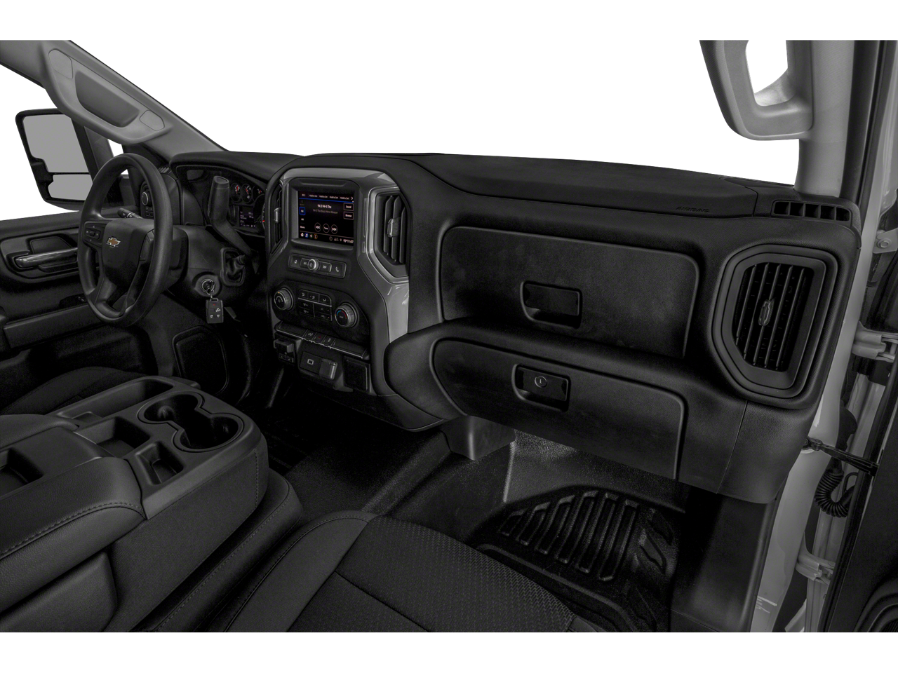 Inside, you'll find a well-equipped cabin with a premium audio system, steering wheel audio controls, and a 4.2-inch driver information center. The durable rubberized-vinyl floor covering and 60/40 split-folding rear bench seat ensure this Silverado 2500HD Work Truck can handle the demands of your worksite.