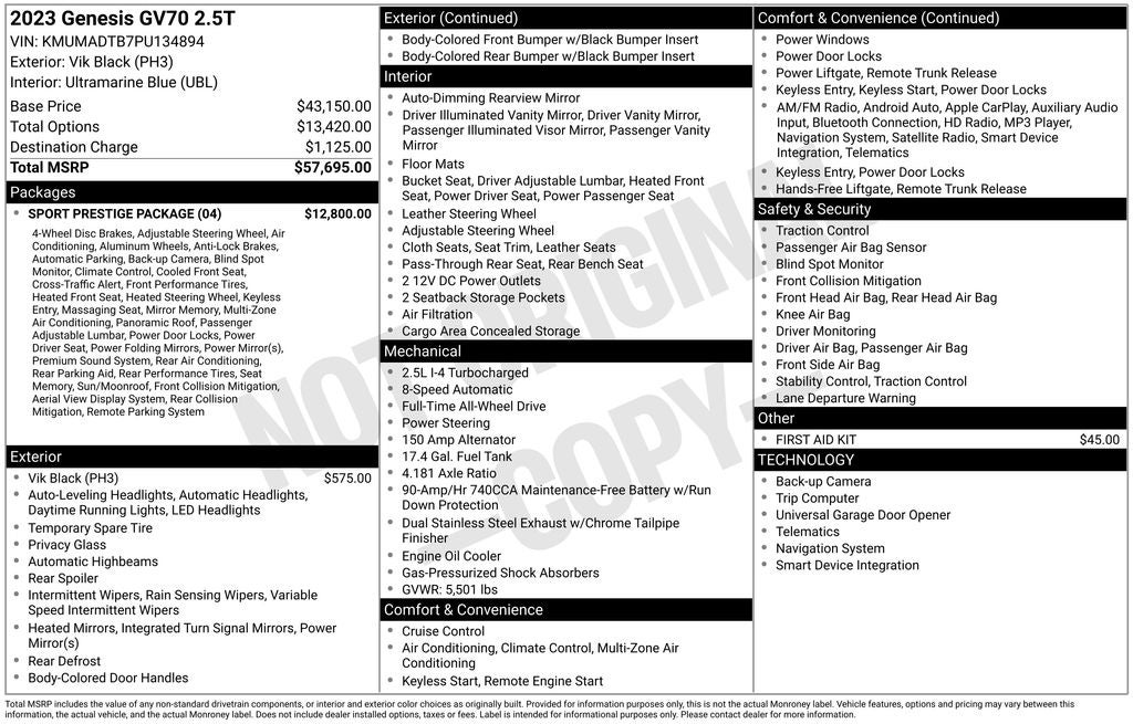 - Vehicle Name: Genesis GV70