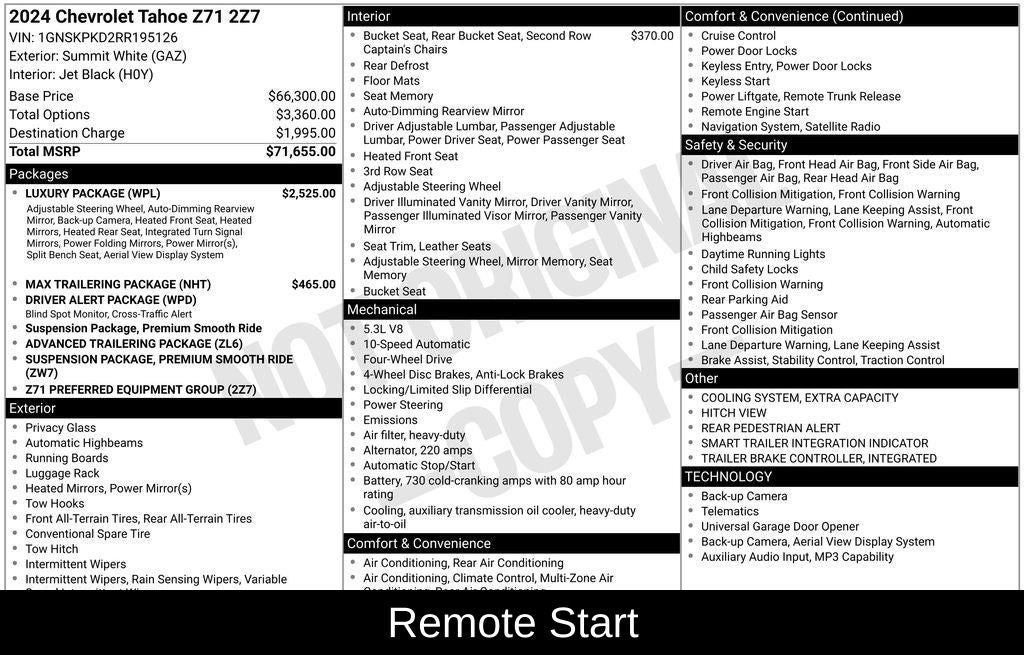 With its impressive towing capacity, advanced trailering features, and powerful 4WD system, the Tahoe Z71 is the ultimate companion for your next adventure. Experience the perfect blend of capability, technology, and luxury in this exceptional Chevrolet SUV. Visit our showroom today and let us demonstrate how the 2024 Tahoe Z71 can elevate your driving experience.
