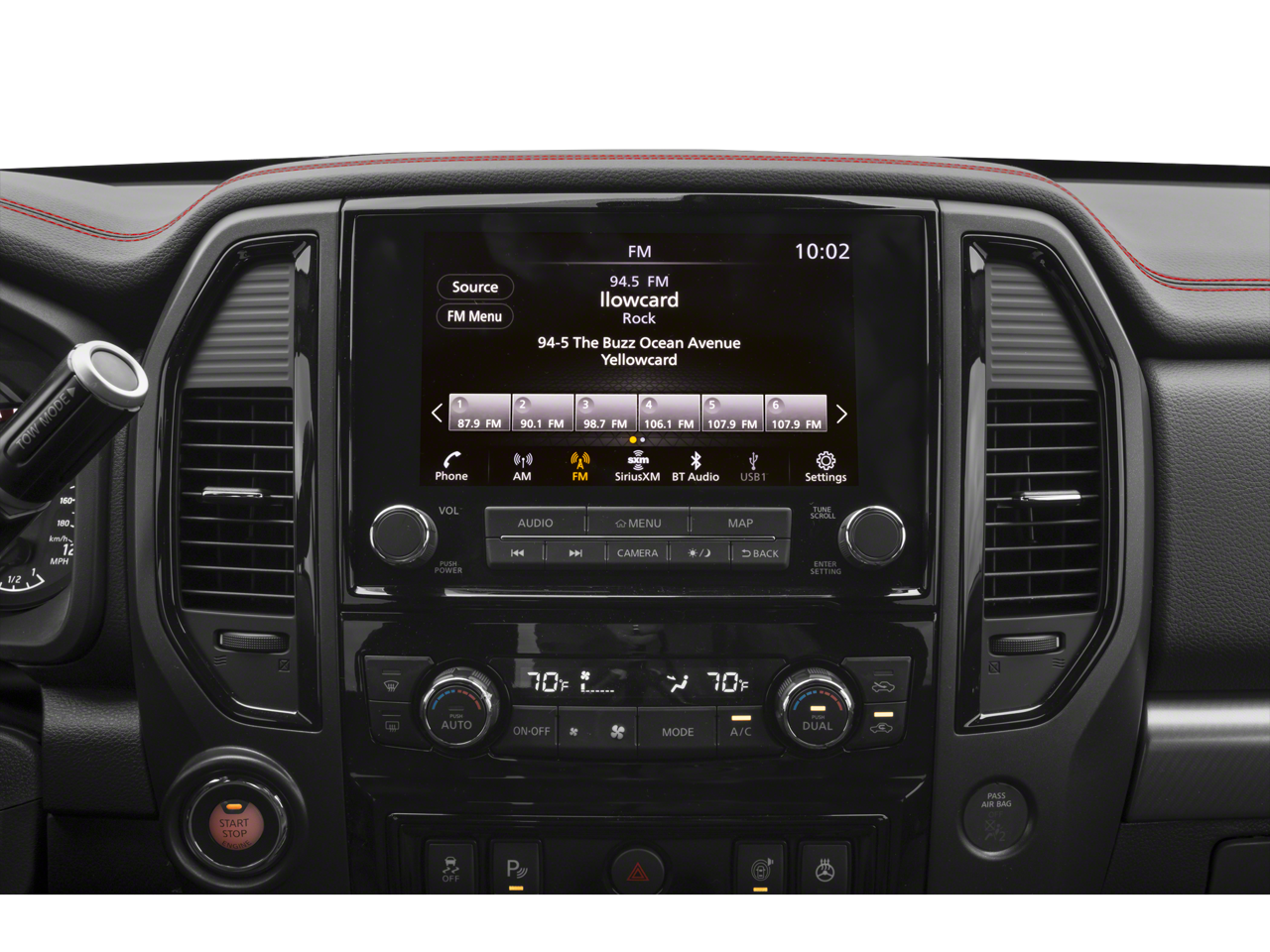3.692 Axle Ratio, 4-Wheel Disc Brakes, 6 Speakers, ABS brakes, Air Conditioning, Alloy wheels, AM/FM radio: SiriusXM, Apple CarPlay/Android Auto, Auto High-beam Headlights, Auto-dimming Rear-View mirror, Auto-leveling suspension, Automatic temperature control, Bed Assist Grip, Blind Spot Warning, Brake assist, Cloth Seat Trim w/Vinyl Bolsters, Compass, Delay-off headlights, Driver door bin, Driver vanity mirror, Dual front impact airbags, Dual front side impact airbags, Electronic Stability Control, Emergency communication system: NissanConnect Services, Front anti-roll bar, Front Bucket Seats, Front Captain's Seats, Front Center Armrest, Front dual zone A/C, Front fog lights, Front reading lights, Front wheel independent suspension, Fully automatic headlights, Garage door transmitter: HomeLink, Heated door mirrors, Illuminated entry, Knee airbag, Leather steering wheel, Low tire pressure warning, Navigation system: NissanConnect with Navigation and Services, Occupant sensing airbag, Outside temperature display, Overhead airbag, Overhead console, Panic alarm, Passenger door bin, Passenger vanity mirror, Power door mirrors, Power driver seat, Power steering, Power windows, PRO-4X Badged Floor Mats, PRO-4X Illuminated Kick Plate, PRO-4X Mud Flaps, PRO-4X Rugged Step Boards, PRO-4X Utility Package, Radio data system, Radio: NissanConnect w/Navigation, Rain sensing wipers, Rear anti-roll bar, Rear Bumper Step w/Electronic Tailgate Lock, Rear Parking Sensors, Rear reading lights, Rear seat center armrest, Rear step bumper, Rear Underseat Storage, Rear window defroster, Remote keyless entry, Security system, Speed control, Speed-sensing steering, Speed-Sensitive Wipers, Split folding rear seat, Steering wheel mounted audio controls, Tachometer, Telescoping steering wheel, Tilt steering wheel, Traction control, Trip computer, USB Charging Cables, Variably intermittent wipers, Voltmeter, Wheels: 18 x 8 Painted Dark Finish Alloy.