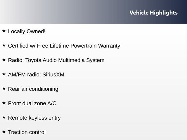 - Certified w/ Free Lifetime Powertrain Warranty!