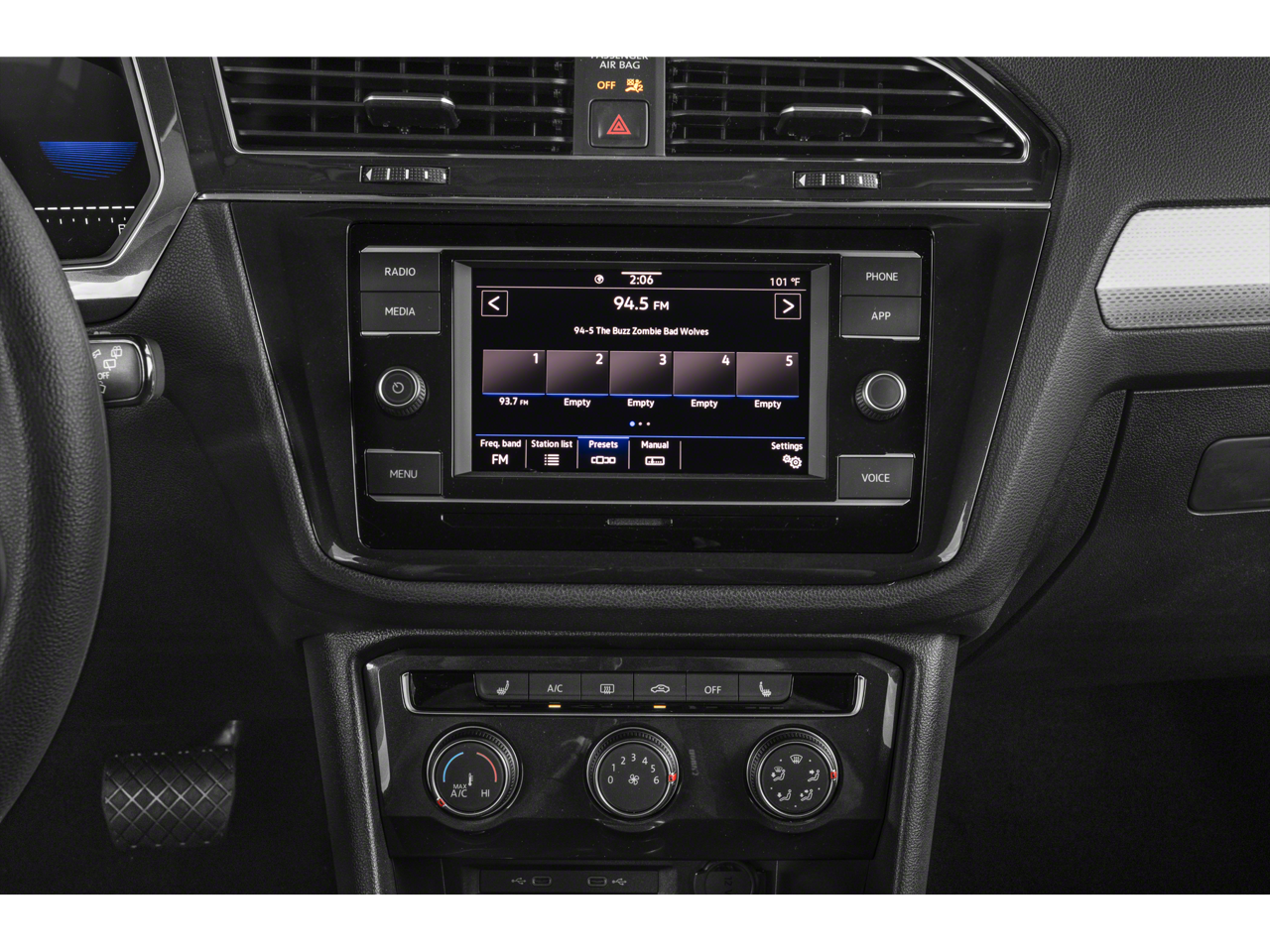 • Radio: MIB3 Composition Media AM/FM/HD -inc: 8" touchscreen, WMA/MP3/FLAC player w/USB-C, 6-speaker sound system, capability for in-vehicle 4G LTE enabled Wi-Fi (cellular data plan required; includes limited trial), capability for VW Car-Net services (capabilities for certain services vary; requires enrollment or subscription), Bluetooth® connectivity (for compatible devices), SiriusXM w/360L (w/3-month free trial subscription; 360L services require acceptance of Car-Net terms), App-Connect smartphone integration (w/Apple CarPlay, Android Auto and MirrorLink) via USB, Wireless App-Connect smartphone integration (for compatible devices) w/multi-phone pairing capability and 45W fast charging (for compatible mobile phones and accessories) via USB in first and second rows