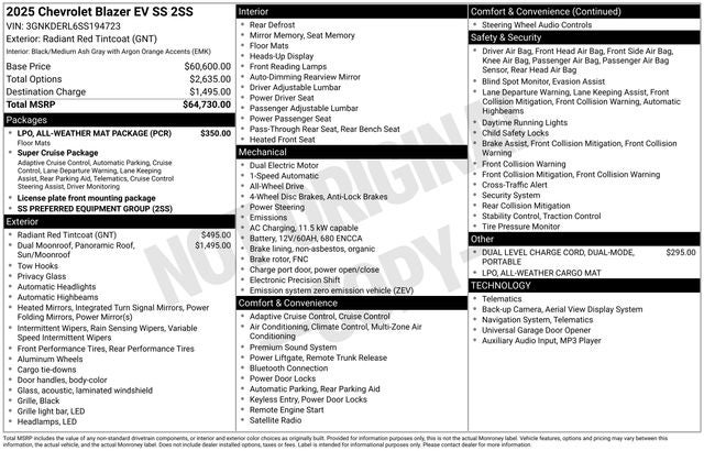 Elevate your commute and weekend adventures with this remarkable vehicle. Boasting an impressive array of amenities, the Blazer EV SS is tailored to your every need: