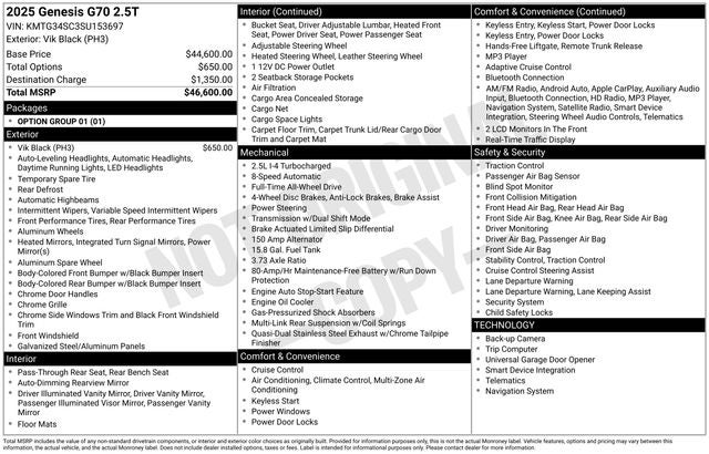 - Radio: AM/FM/SiriusXM/HD Audio System -inc: 6 speakers, 5th generation navigation system w/10.25" touchscreen, dynamic voice recognition, connected routing, over the air updates, Android Auto and Apple CarPlay, SiriusXM Radio w/90-day trial subscription (not available in Alaska or Hawaii), Genesis connected services, Bluetooth® hands-free phone and audio streaming system