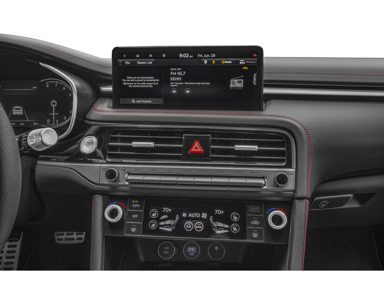 15 Speakers, 4-Wheel Disc Brakes, ABS brakes, Air Conditioning, Alloy wheels, AM/FM radio: SiriusXM, Android Auto & Apple CarPlay, Anti-whiplash front head restraints, Auto High-beam Headlights, Auto-dimming door mirrors, Auto-dimming Rear-View mirror, Automatic temperature control, Brake assist, Bumpers: body-color, Delay-off headlights, Driver door bin, Driver vanity mirror, Dual front impact airbags, Dual front side impact airbags, Electronic Stability Control, Emergency communication system: Genesis Connected Services, Exterior Parking Camera Rear, First Aid Kit, Four wheel independent suspension, Front anti-roll bar, Front Bucket Seats, Front Center Armrest, Front dual zone A/C, Front reading lights, Fully automatic headlights, Garage door transmitter: HomeLink, Heated door mirrors, Heated front seats, Htd & Ventilated Multi-Adjustable Fr Bucket Seats, Illuminated entry, Knee airbag, Leather Seating Surfaces, Low tire pressure warning, Memory seat, Mudguards, Navigation System, Occupant sensing airbag, Option Group 01, Outside temperature display, Overhead airbag, Overhead console, Panic alarm, Passenger door bin, Passenger vanity mirror, Power door mirrors, Power driver seat, Power moonroof, Power passenger seat, Power steering, Power windows, Radio: AM/FM/SiriusXM/HD Lexicon Prem Audio System, Rain sensing wipers, Rear anti-roll bar, Rear reading lights, Rear seat center armrest, Rear side impact airbag, Rear window defroster, Remote keyless entry, Reversible Cargo Tray, Security system, Speed control, Speed-sensing steering, Speed-Sensitive Wipers, Split folding rear seat, Steering wheel memory, Steering wheel mounted audio controls, Tachometer, Telescoping steering wheel, Traction control, Trip computer, Turn signal indicator mirrors, Variably intermittent wipers, Ventilated front seats, Wheels: 19 x 8.0J Fr & 19 x 8.5J Rr Sport Alloy.