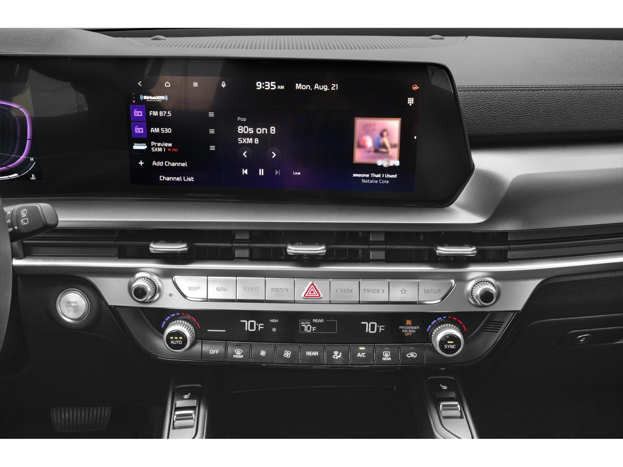• Radio: AM/FM Display Audio System -inc: 12.3" audio display unit w/navigation, MAP OTA, quiet mode, Android Auto and Apple CarPlay capability, SiriusXM, 6 speakers, multi-Bluetooth hands-free function w/voice recognition, Telematics Mobile Unit (TMU) and Wi-Fi hotspot