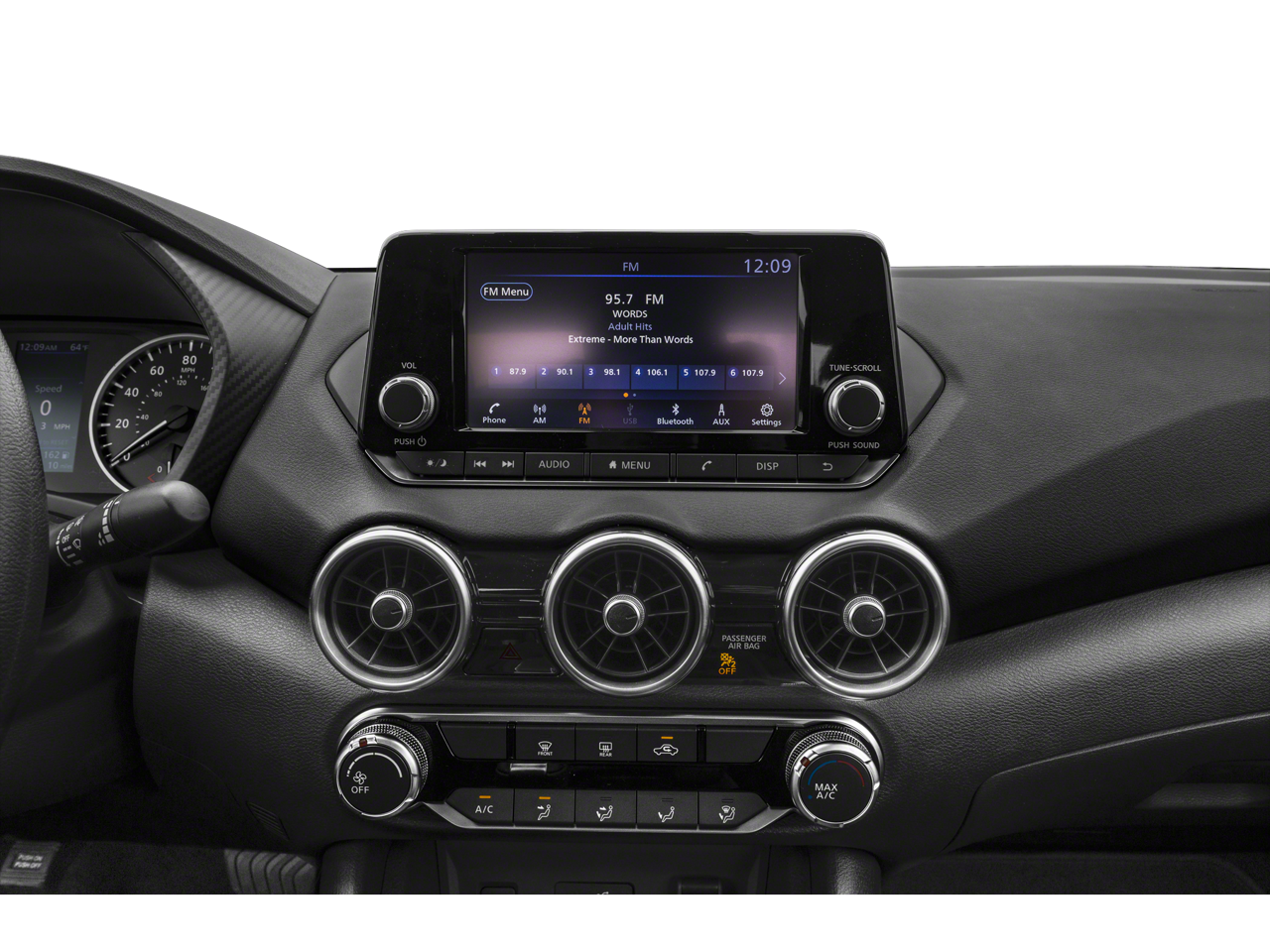 4 Speakers, ABS brakes, Air Conditioning, AM/FM radio, Auto High-beam Headlights, Blind Spot Warning, Brake assist, Bumpers: body-color, Carpeted Floor Mats with Trunk Mat, Cloth Seat Trim, Delay-off headlights, Driver door bin, Driver vanity mirror, Dual front impact airbags, Dual front side impact airbags, Electronic Stability Control, Four wheel independent suspension, Front anti-roll bar, Front Bucket Seats, Front Center Armrest, Front reading lights, Fully automatic headlights, Illuminated entry, Knee airbag, Low tire pressure warning, NissanConnect featuring Apple CarPlay and Android Auto, Occupant sensing airbag, Outside temperature display, Overhead airbag, Overhead console, Panic alarm, Passenger door bin, Passenger vanity mirror, Power door mirrors, Power steering, Power windows, Radio data system, Radio: AM/FM with RDS/MP3/Aux-in, Rear anti-roll bar, Rear Parking Sensors, Rear side impact airbag, Rear window defroster, Remote keyless entry, Speed control, Speed-sensing steering, Split folding rear seat, Steering wheel mounted audio controls, Tachometer, Telescoping steering wheel, Tilt steering wheel, Traction control, Trip computer, Variably intermittent wipers, Wheels: 16 Steel with Full Covers.