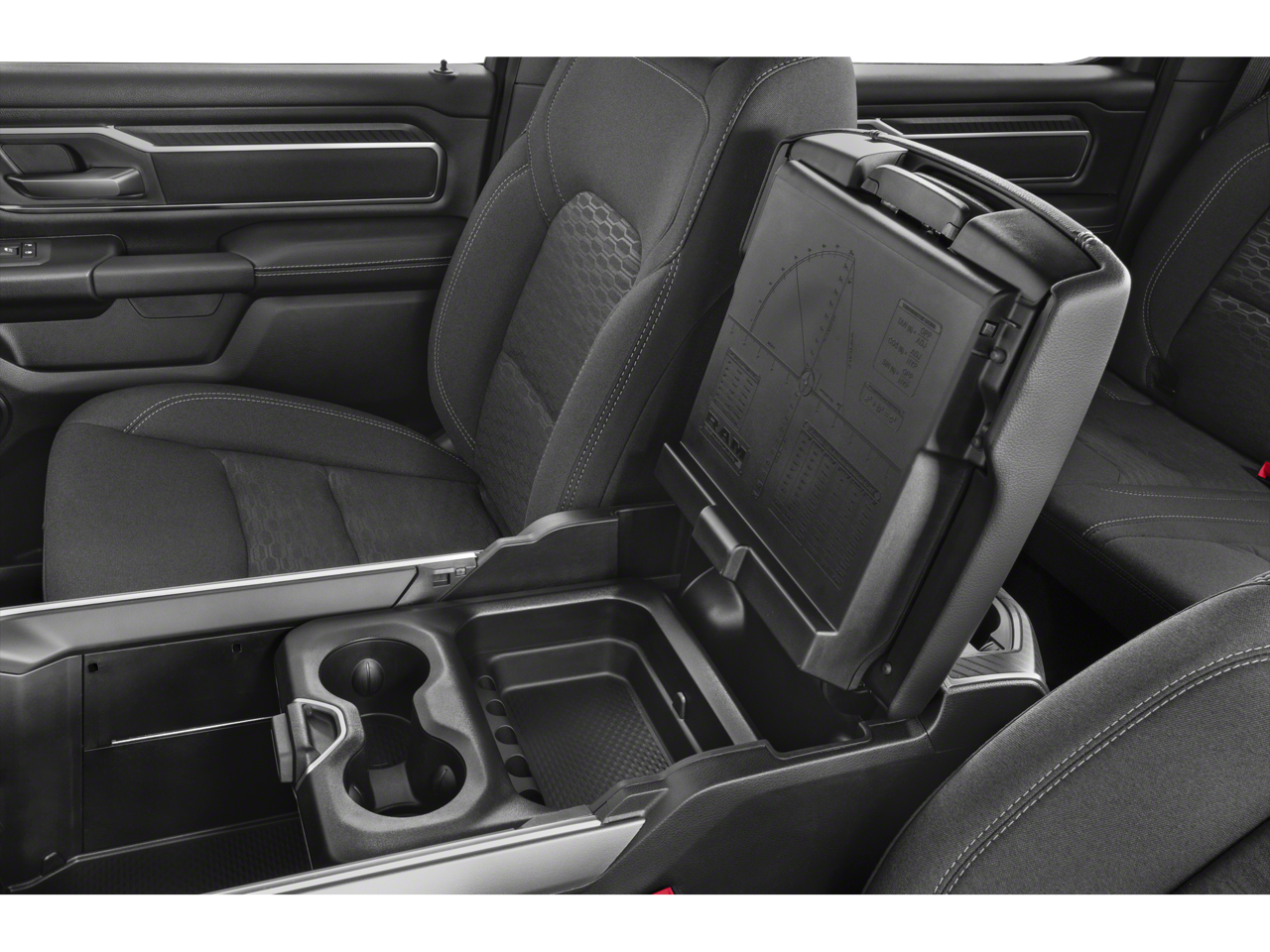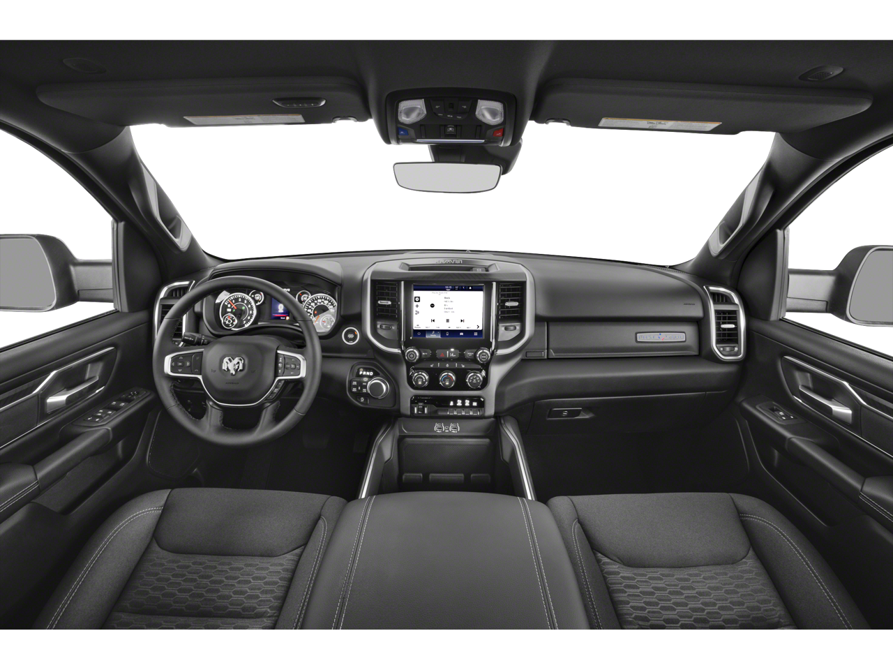 115V Auxiliary Power Outlet, 115V Auxiliary Rear Power Outlet, 12 Touchscreen Display, 2nd Row In Floor Storage Bins, 3 Rear Seat Head Restraints, 4 Way Front Headrests, 4-Wheel Disc Brakes, 400W Inverter, 4G LTE Wi-Fi Hot Spot, 6 Speakers, 9 Amplified Speakers w/Subwoofer, ABS brakes, Accent Color Door Handles, Accent Color Premium Power Mirrors, Accent Color Tailgate Handle, Air Conditioning, Air Conditioning ATC w/Dual Zone Control, Alloy wheels, AM/FM radio, Anti-Spin Differential Rear Axle, Apple CarPlay, Apple CarPlay/Android Auto, Auto High-beam Headlights, Auto Power-Folding Mirrors, Auto-Dimming Exterior Driver Mirror, Auto-Dimming Rear-View Mirror, Bed Utility Group, Big Horn Level 2 Equipment Group, Black Exterior Mirrors, Black Exterior Truck Badging, Black Headlamp Bezels, Black Interior Accents, Black Painted Exterior Mirrors Caps, Black Premium Power Mirrors, Black Tail Lamp Bezels, Body Color Front Bumper, Body Color Rear Bumper w/Step Pads, Brake assist, Bucket Seats, Bumpers: chrome, Cloth Bench Seat, Cluster 12 TFT Color Display, Cluster 7.0 TFT Color Display, Compass, Configurable Drive Mode, Connected Travel & Traffic Services, Connectivity - US/Canada, Convex Wide-Angle Exterior Mirror Insert, Delay-off headlights, Deluxe Cloth Bucket Seats, Driver door bin, Dual front impact airbags, Dual front side impact airbags, Electronic Stability Control, Exterior 115V AC Outlet, Exterior Mirrors Courtesy Lamps, Exterior Mirrors w/Heating Element, Exterior Mirrors w/Supplemental Signals, Front anti-roll bar, Front Center Armrest w/Storage, Front fog lights, Front reading lights, Front Seat Back Map Pockets, Front wheel independent suspension, Full Length Floor Console, Fully automatic headlights, Glove Box Lamp, Google Android Auto, GPS Antenna Input, GPS Navigation, Grille Black Surround Black Mesh, HD Radio, Heated door mirrors, Heated Front Seats, Heated Steering Wheel, Illuminated entry, Integrated Voice Command w/Bluetooth®, Leather Wrapped Steering Wheel, LED Dome Lamp w/On/Off Switch, LED Footwell Lighting, Low tire pressure warning, Manual Adjust 4-Way Front Passenger Seat, Manual Folding Exterior Mirrors, Media Hub w/2 Charge Only USBs, MOPAR 4 Adjustable Cargo Tie-Down Hooks, MOPAR Front & Rear Rubber Floor Mats, MOPAR Spray In Bedliner, Night Edition, Occupant sensing airbag, Outside temperature display, Overhead airbag, Overhead console, Overhead LED Lamps, Panic alarm, ParkView Rear Back-Up Camera, Passenger door bin, Passenger vanity mirror, Pick-Up Box Lighting, Power 2-Way Driver Lumbar Adjust, Power Adjust 8-Way Driver Seat, Power Adjustable Pedals, Power door mirrors, Power steering, Power windows, Premium Overhead Console, Quick Order Package 21Z Big Horn, Radio data system, Radio: Uconnect 5 Nav w/12.0 Display, Radio: Uconnect 5 W w/8.4 Display, RAM Grille Badge - Black, RAM Grille Badge - Chrome, Rear 60/40 Folding Seat, Rear anti-roll bar, Rear Center Armrest, Rear Power Sliding Window, Rear seat center armrest, Rear step bumper, Rear Window Defroster, Remote keyless entry, Remote Tailgate Release, Security Alarm, SiriusXM w/360L, Speed control, Split folding rear seat, Steering Wheel Mounted Audio Controls, Sun Visors w/Illuminated Vanity Mirrors, Supplier Part Tracking (J-1), Tachometer, Telescoping steering wheel, Tilt steering wheel, Traction control, Trip computer, Universal Garage Door Opener, USB Host Flip, Variably intermittent wipers, Voltmeter, Wheels: 18 x 8 Cast-Aluminum Painted, Wheels: 20 x 9.0 Aluminum Painted Clad.