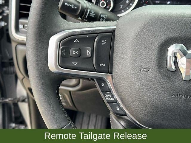 Designed with your convenience in mind, this Ram 1500 boasts a host of advanced features, including power-adjustable pedals, a heated steering wheel, and a remote tailgate release. The Bed Utility Group adds practical touches like a MOPAR spray-in bedliner and adjustable cargo tie-down hooks, making it easy to transport your gear with confidence.
